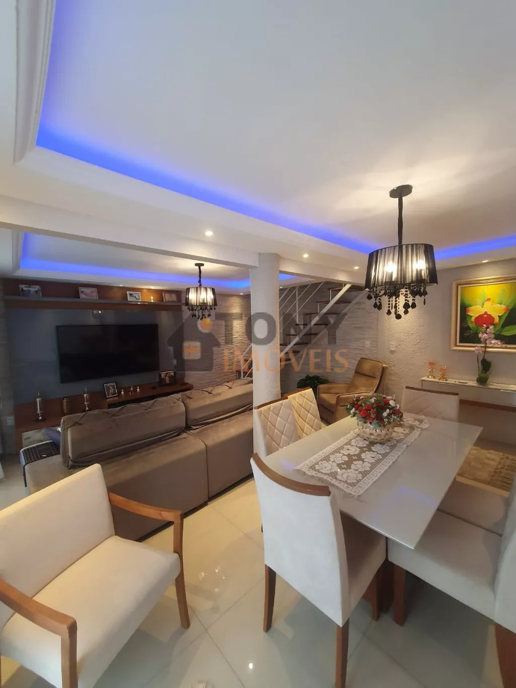 No andar superior tem 3 quartos sendo um suíte e no andar de baixo sala cozinha um banheiro sala para dois ambientes (sala de jantar e estar) piscina, jacuzzi com 7 lugares , área gourmet com churrasqueira e um banheiro, além de 4 vagas de garagem, 2 cobertas e 2 descobertas.
