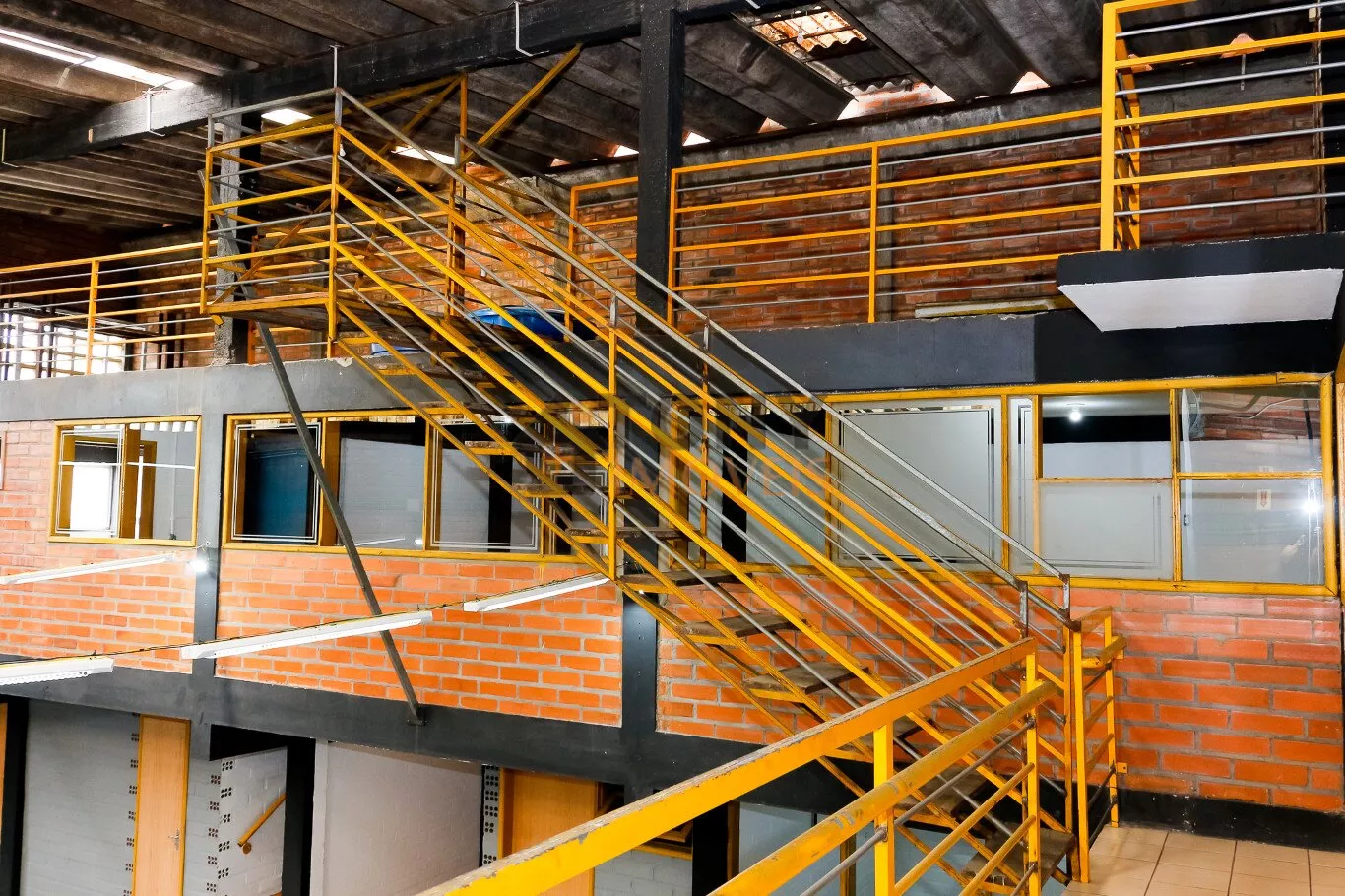 São 2 mezaninos, 3 banheiros, Salas que podem ser modificadas, 5 vagas na frente, estrutura completa e já com circuito trifásico, área construida de 474m²