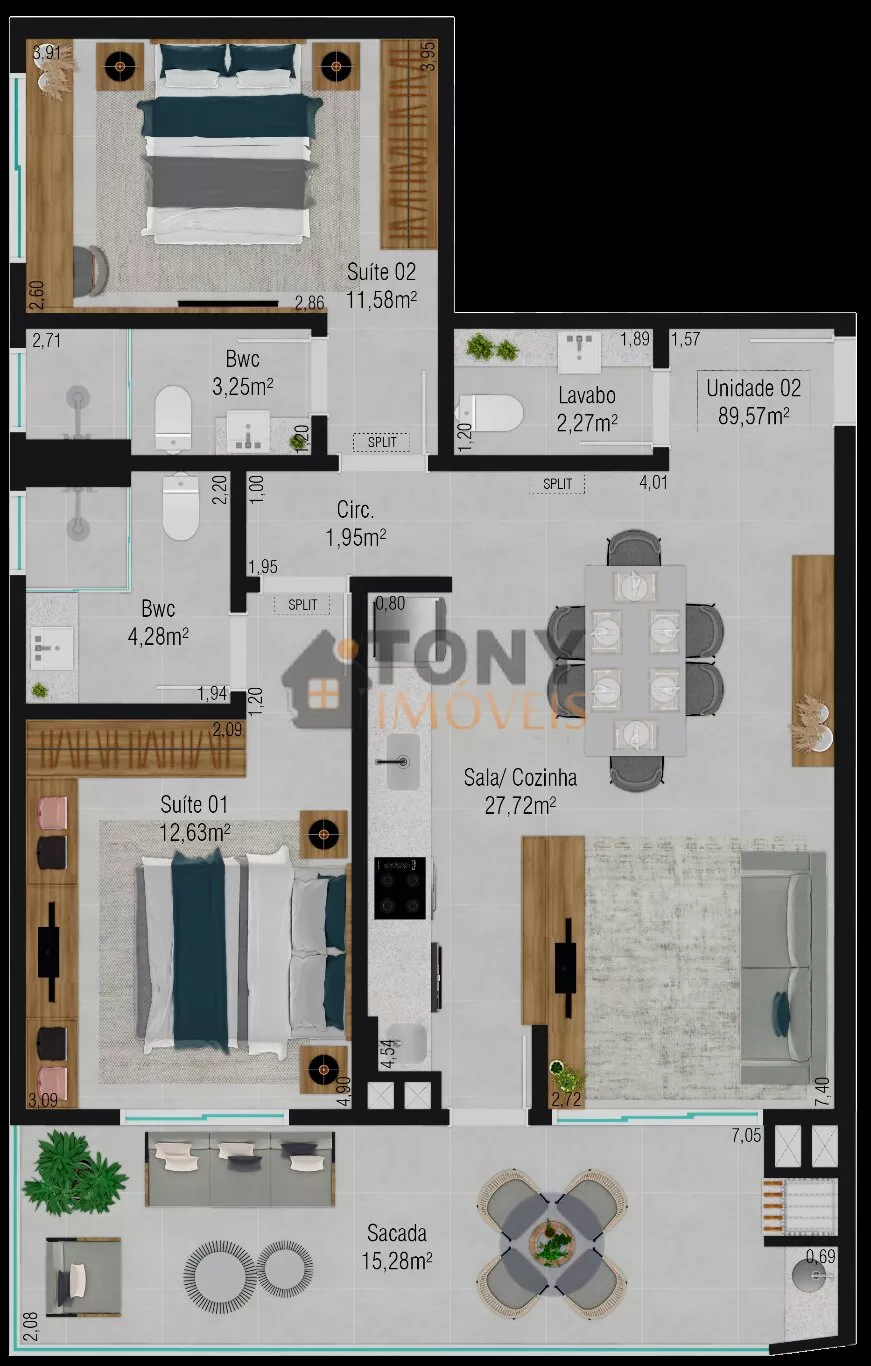 | Dormitórios: | (2) dormitório(s) sendo (2) suíte(s) | |