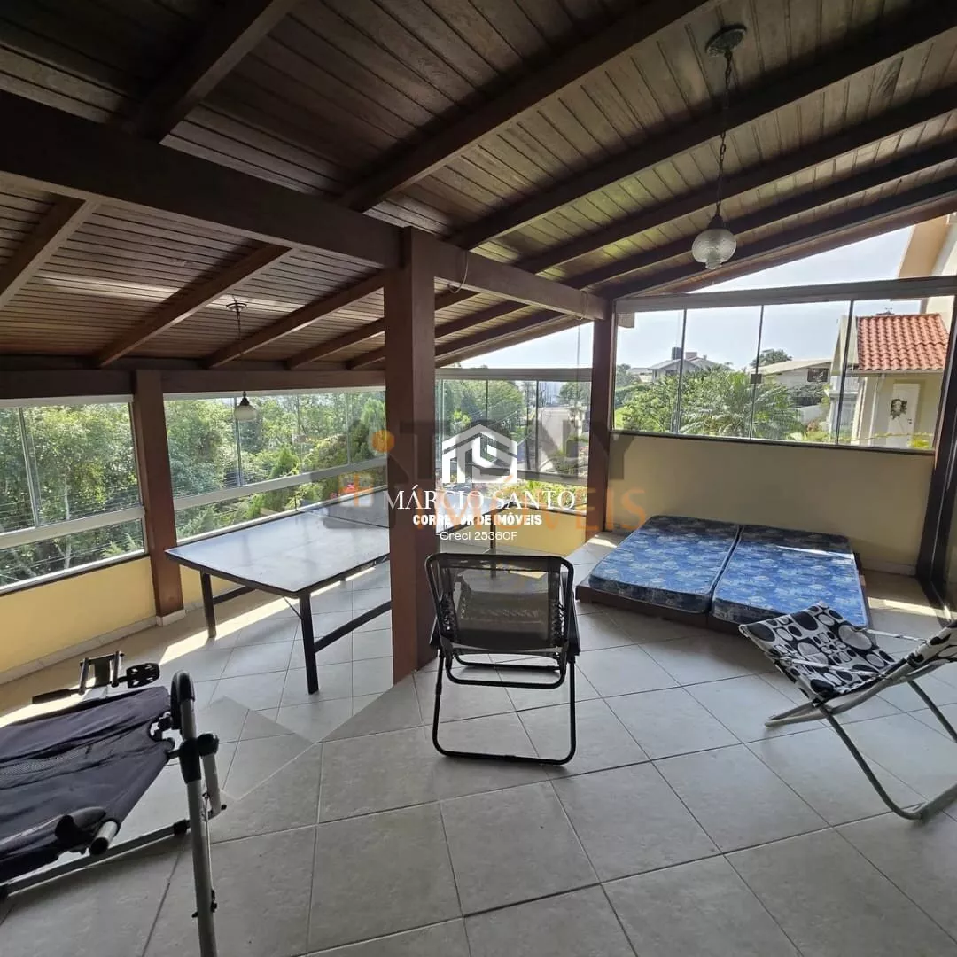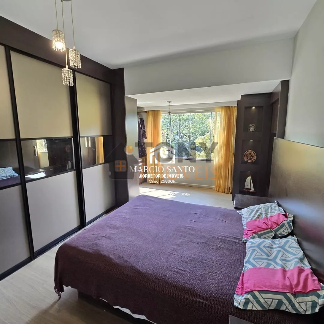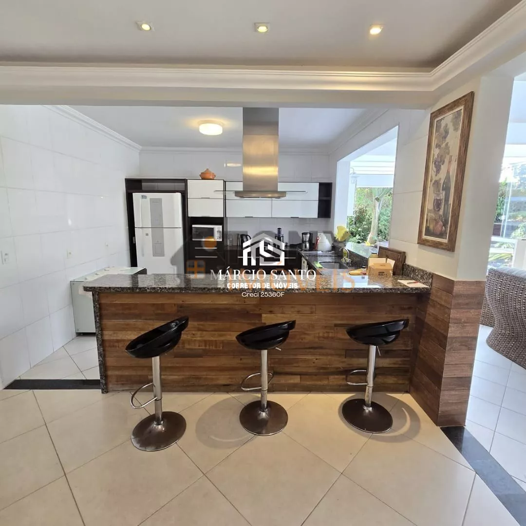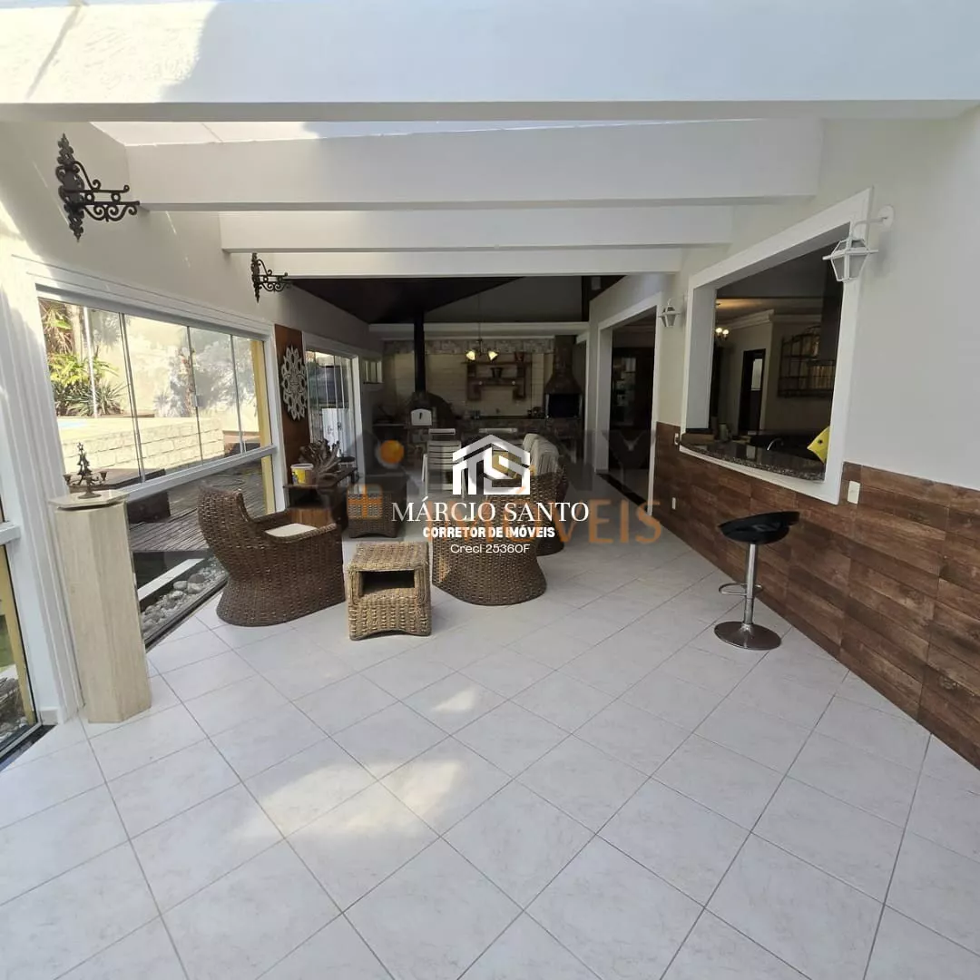 Casa residencial de alto padrão com mais de 665m², possui 5 dormitórios, sendo 4 suítes; 3 salas amplas, sendo a sala estar com lareira; varanda superior com academia e espaço lounge; varanda gourmet equipada com churrasqueira, forno de pizza e integrada ao ambiente da cozinha, sala de estar e quintal; espaço home office; cozinha planejada; 2 lavabos; edícula com dependência de empregada, banheiro de serviços, lavanderia, espaço de jogos e sauna úmida.