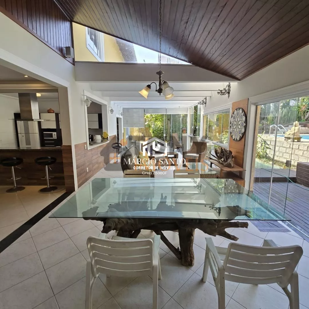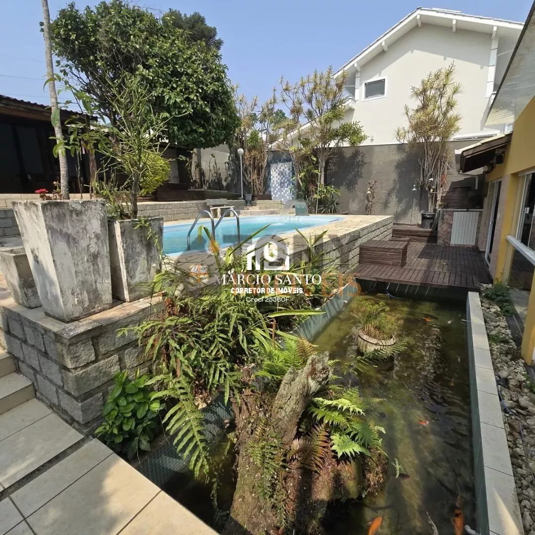 Imóvel conta com quintal espaçoso com jardim, lago com carpas e piscina. Casa possui garagem fechada com 3 vagas, uma suíte com banheira de hidromassagem com vista para o bosque e outra suíte com ofurô, sistema de som para 4 ambientes, piso laminado e cerâmico.