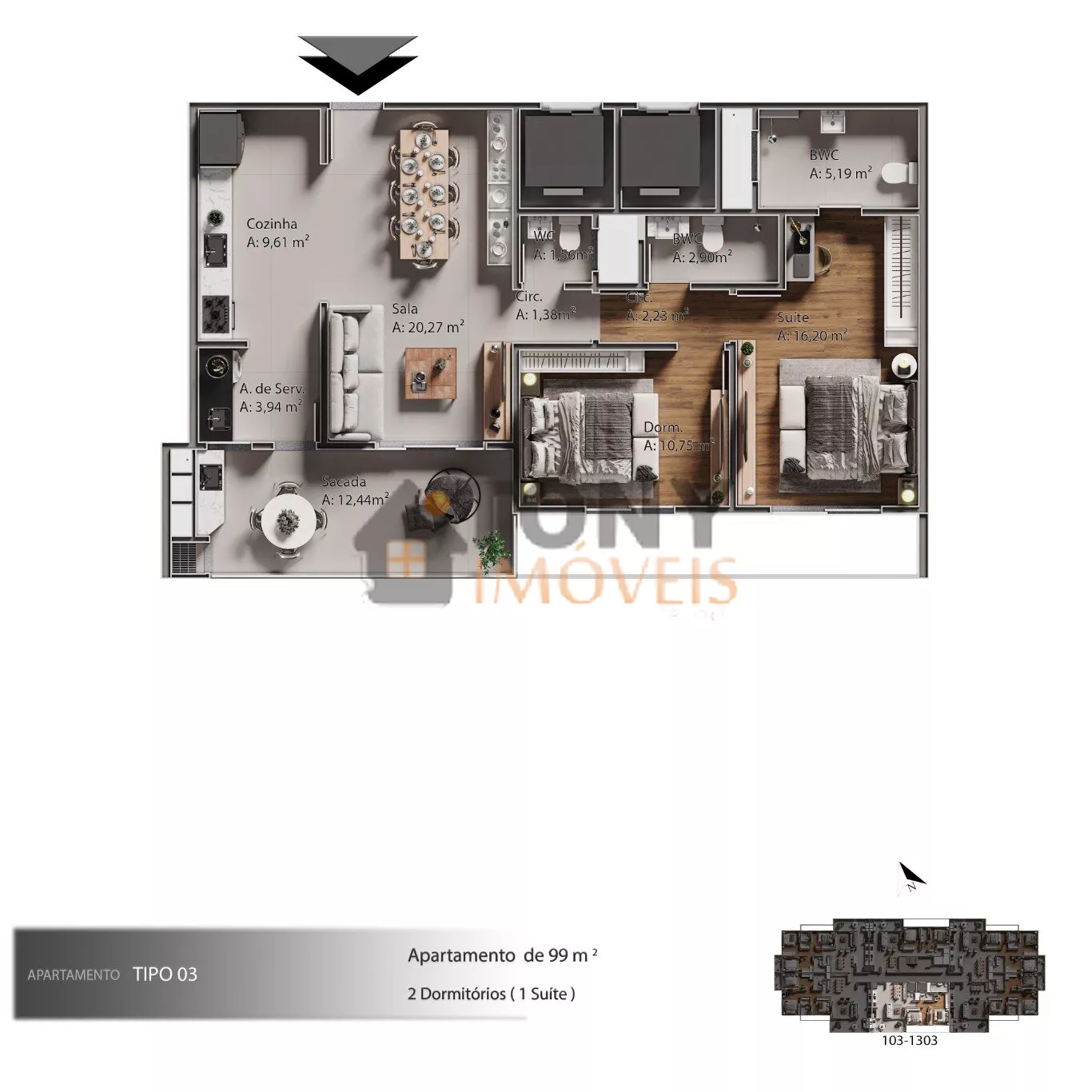 | Apartamento: | 2 DORMITÓRIOS ( SUÍTE + LAVABO) 100M² PRIVATIVOS | |