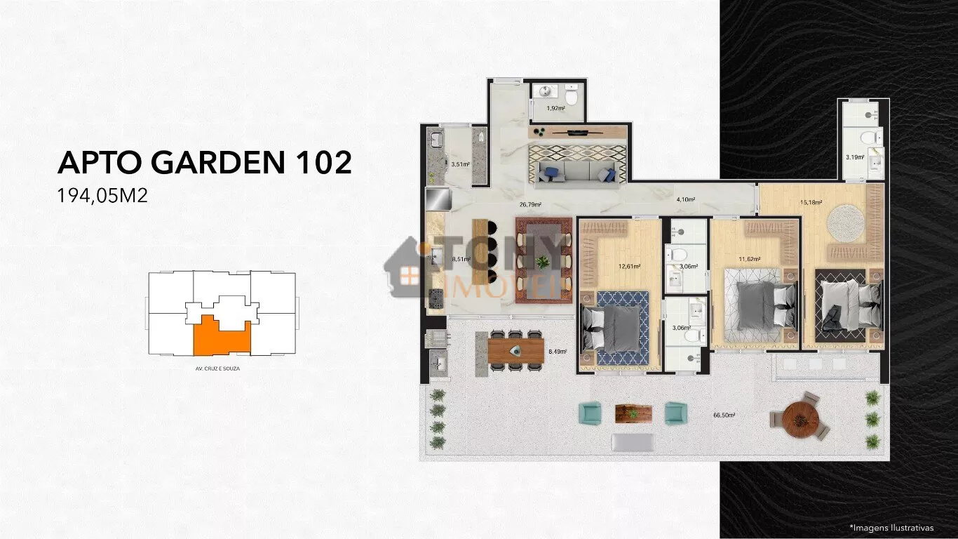 | Apartamento: | APARTAMENTO GARDEN 194 M² - 3 SUÍTES - 2 VAGAS | |