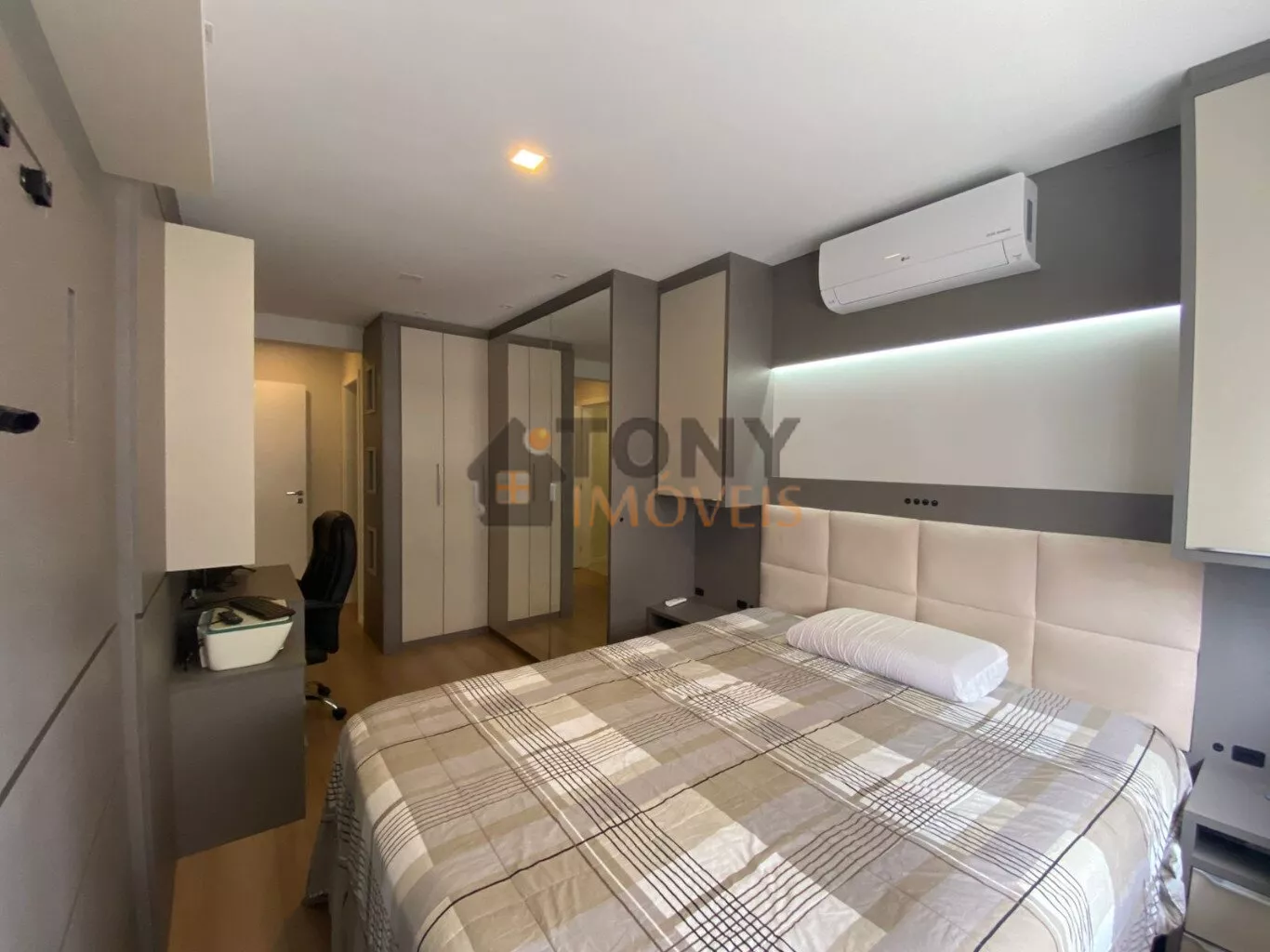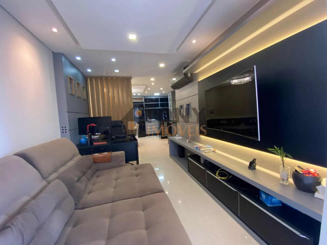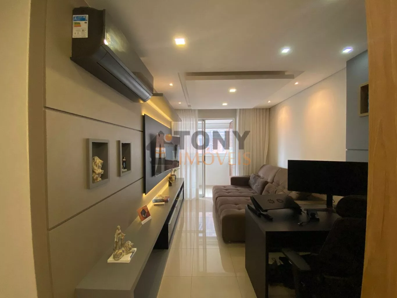 São 2 quartos sendo 1 suíte e 1 banheiro social, ao total são 82m² privativos com uma sala ampla, churrasqueira na sacada que tem um ótimo espaço para a família e amigos, apartamento conta com móveis embutidos, ar condicionado, muito bem mobiliado e arejado, andar alto, 1 vaga de garagem.