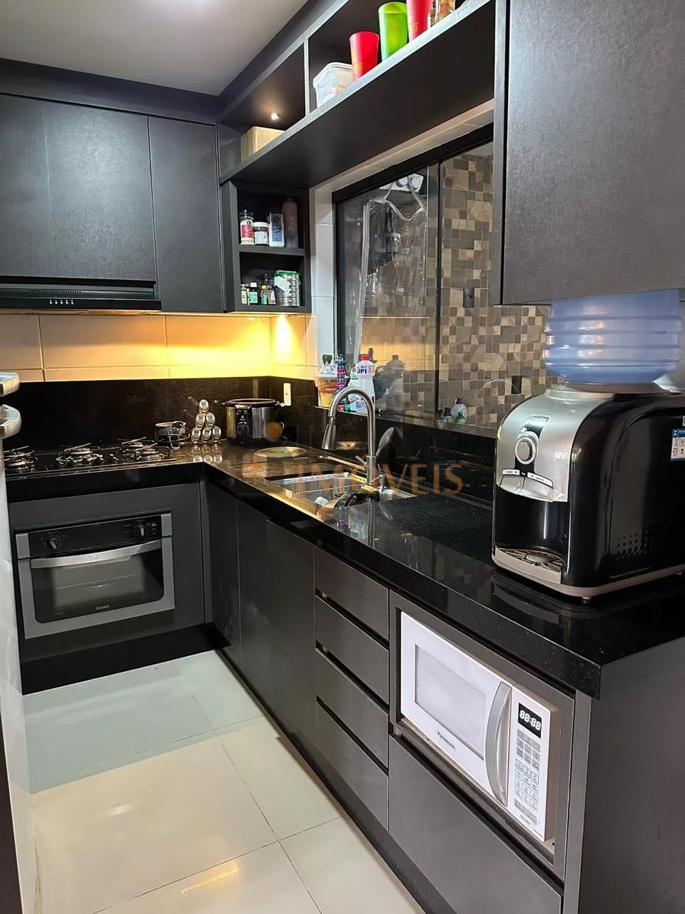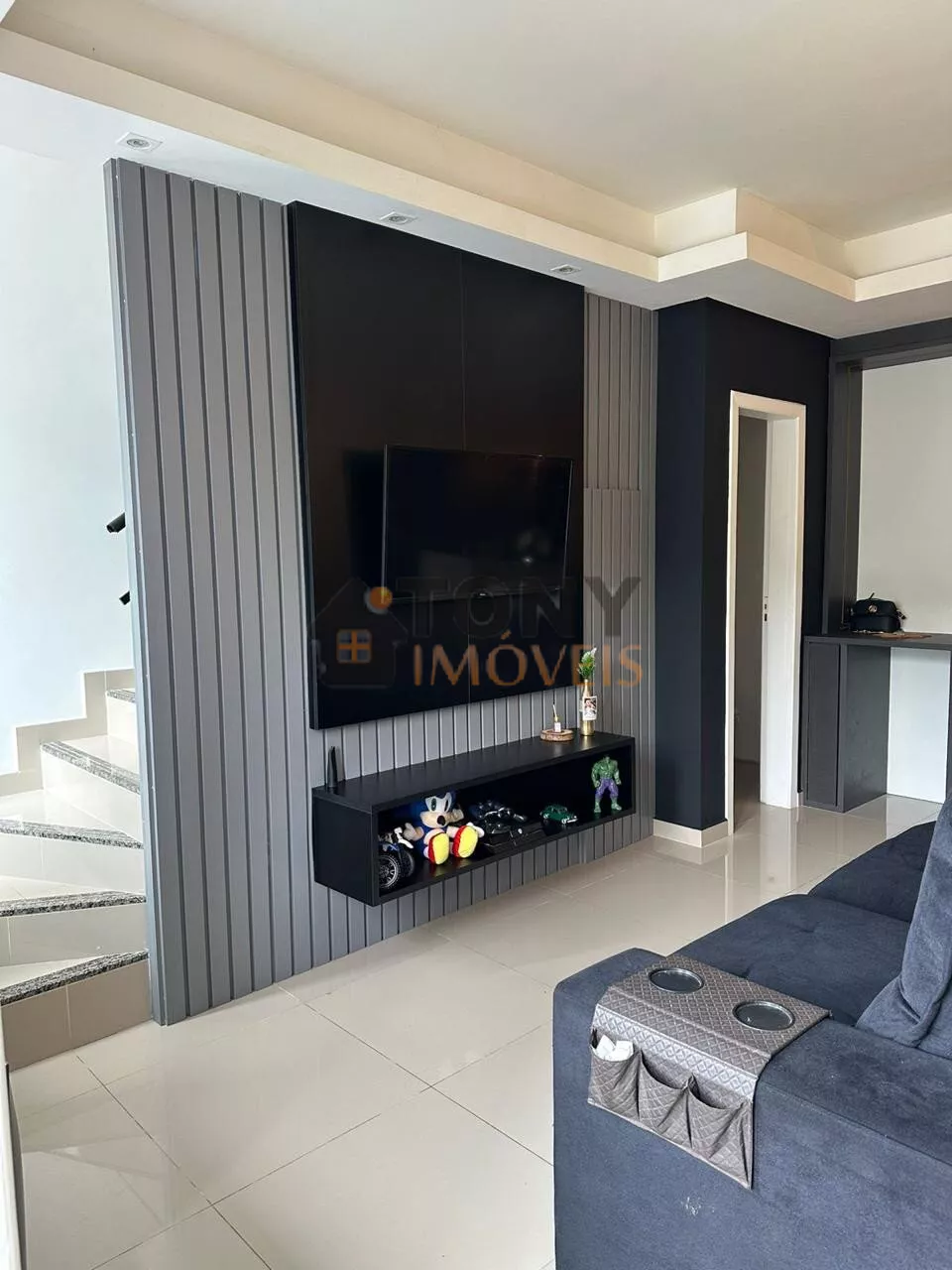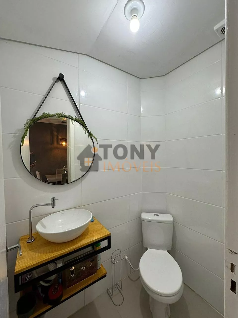 São 77m² com 2 quartos 1 banheiro social e 1 lavabo no térreo, gesso na sala, piso porcelanato por todo imóvel, móveis planejados, área com churrasqueira nos fundos e canto alemão.