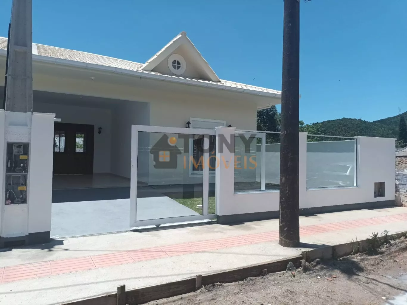 Se você está em busca de um novo lar em um bairro tranquilo e bem localizado, esta casa em Praia de Fora, Palhoça, é a escolha perfeita. Com 87m², a residência oferece um design americano sofisticado e acabamentos de alta qualidade. A entrada é marcada por um portão em blindex, garantindo segurança e modernidade.