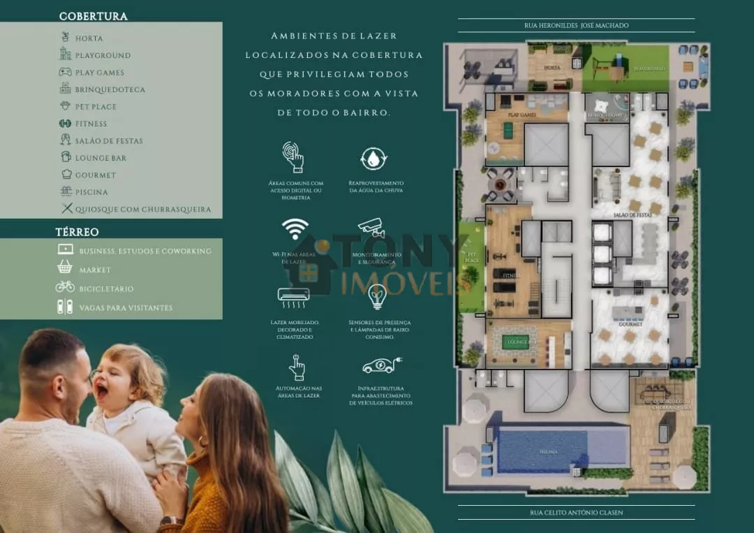COndomínio com playground, salão de festa, pet place, academia, lounge bar, piscina, vaga para visitante.
