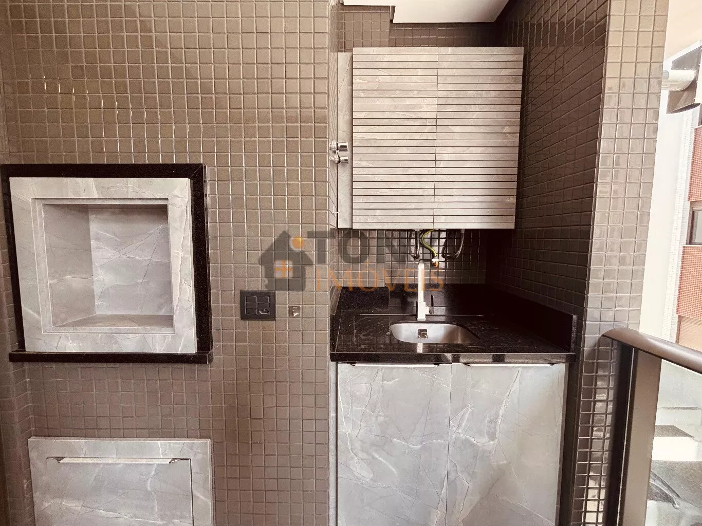 São 52m² com 2 quartos sendo 1 suíte e 1 banheiro social, mobiliado e equipado pronto para você e sua família, uma sacada ampla com churrasqueira, sala espaçosa com cozinha americana pronta para uso além de uma ótima área de serviço, rebaixo de gesso no teto, banheiros com box vidro e ventilação natural.