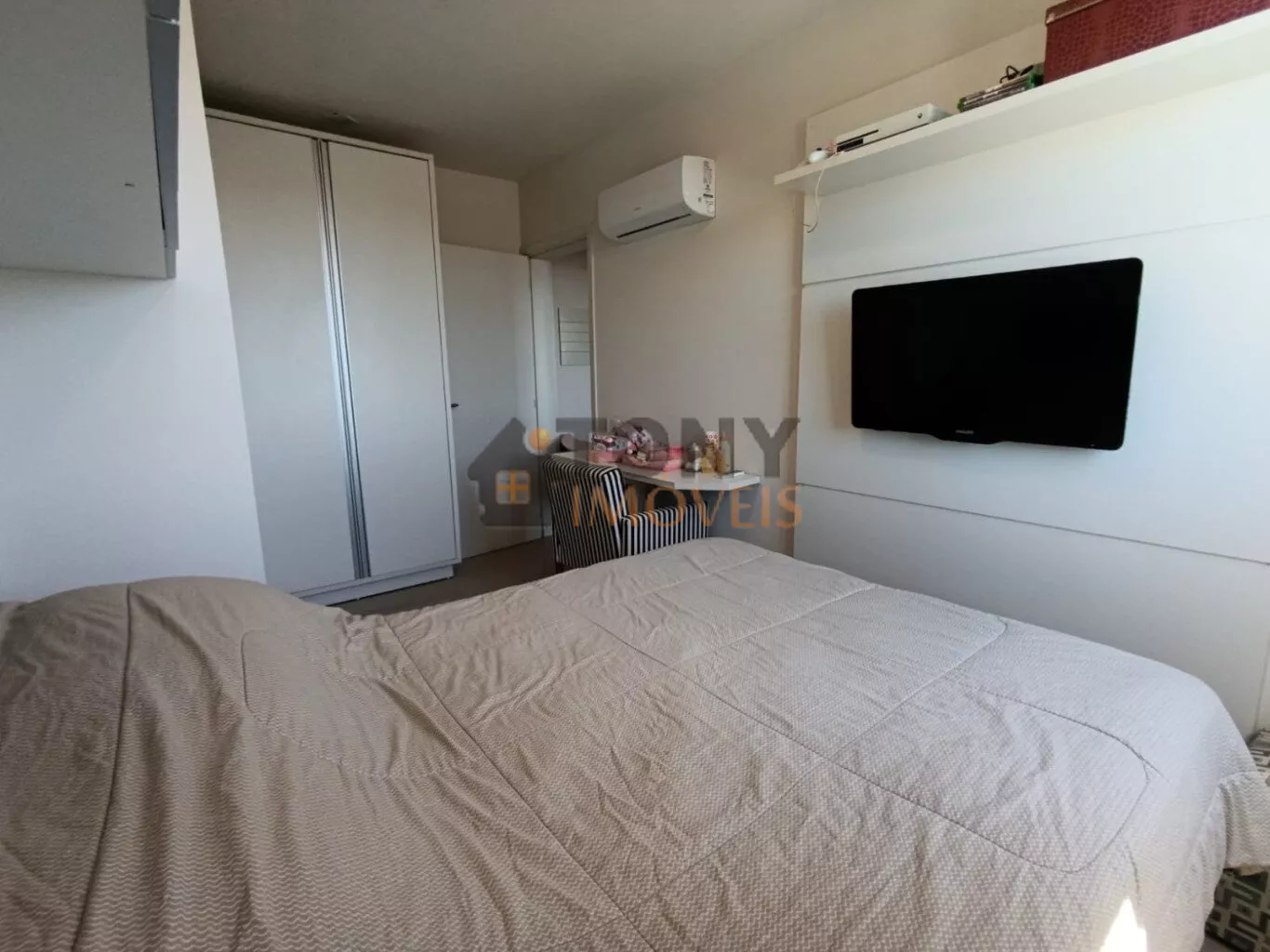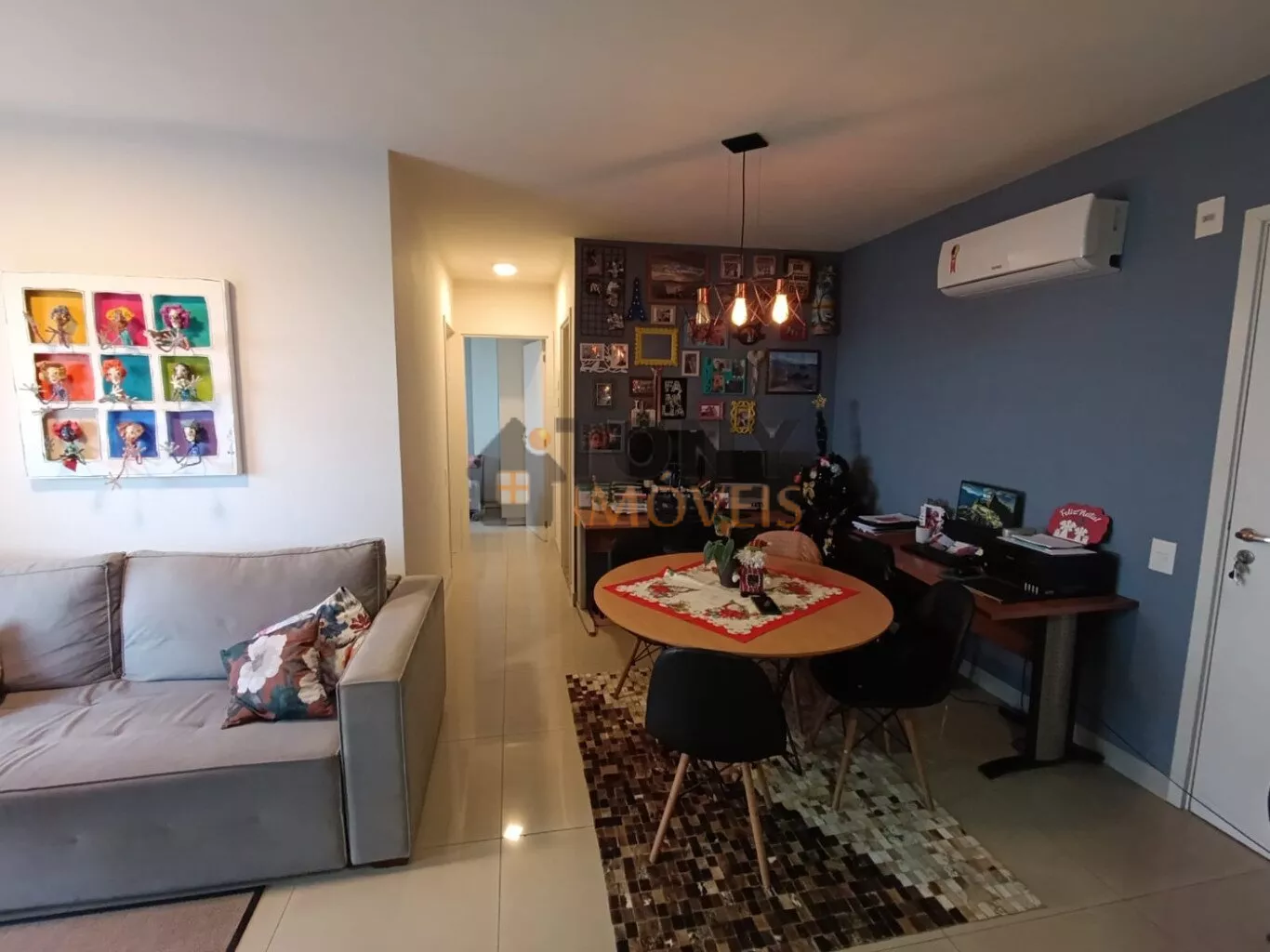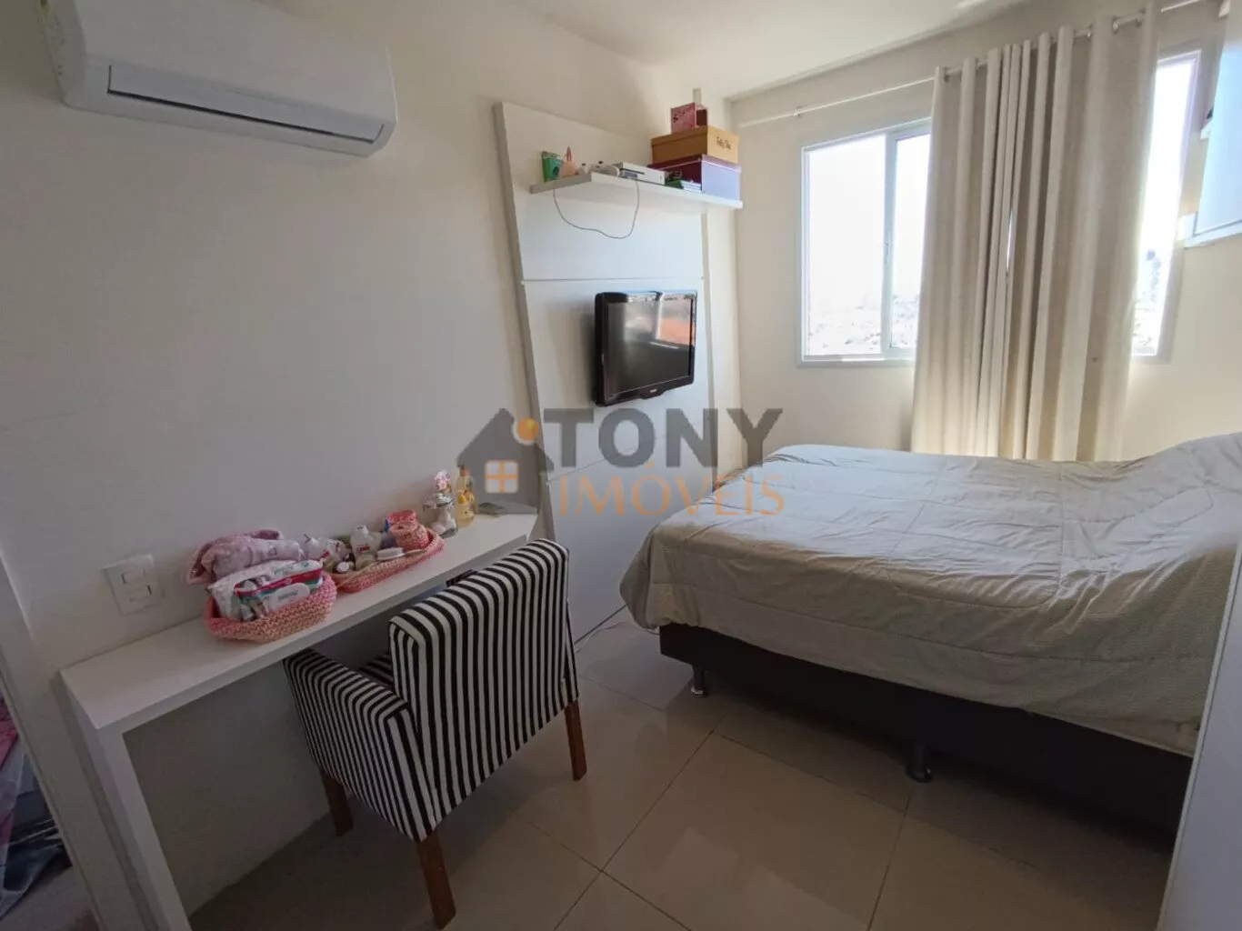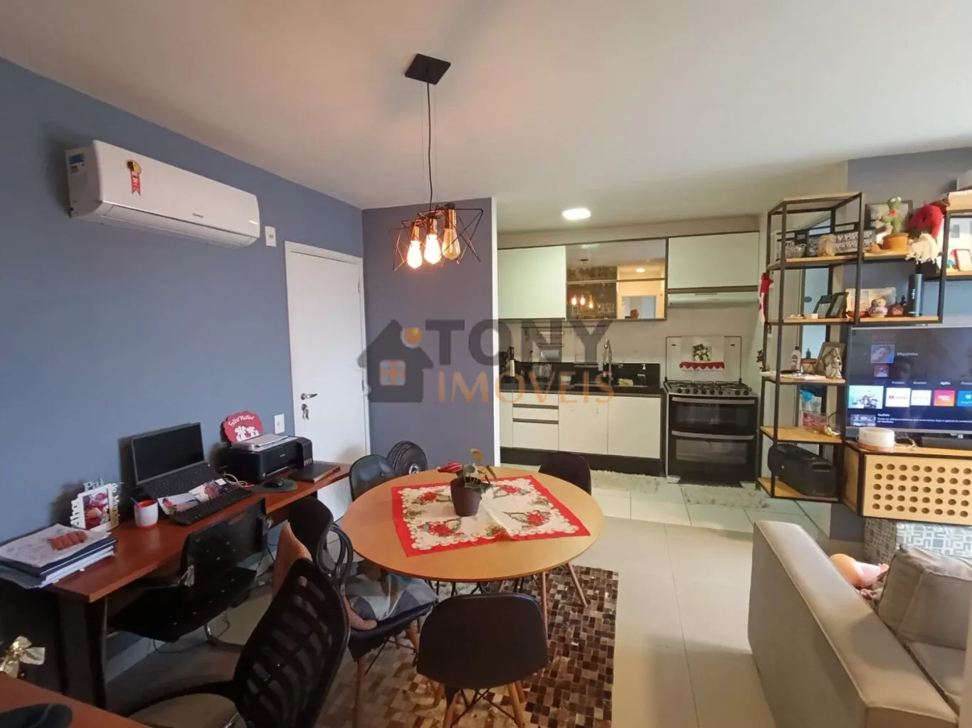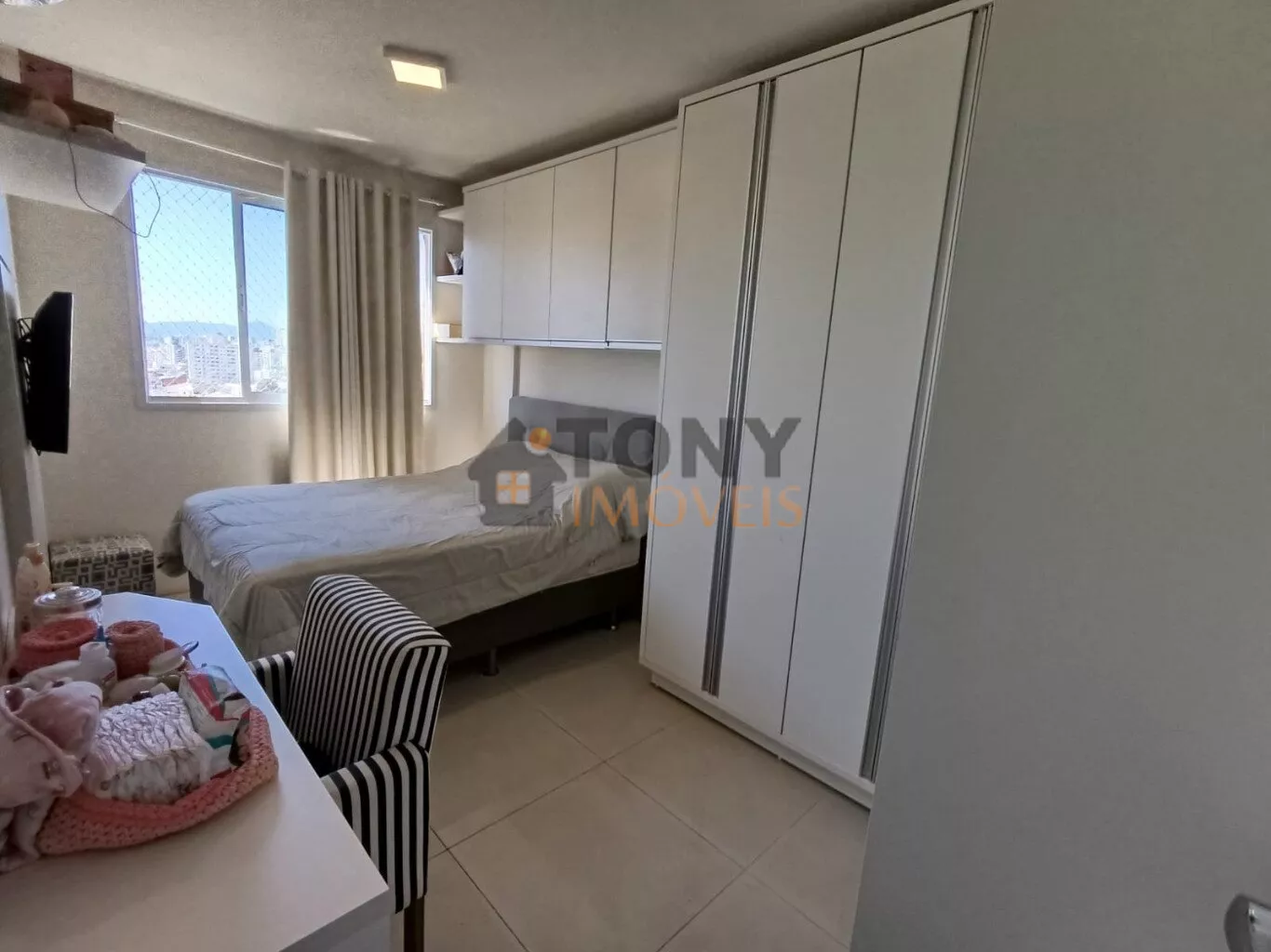 São 61m² privativos com 2 quartos, 1 banheiro social, sacada com churrasqueira além de uma ampla sala e cozinha, uma vista incrível de todo bairro, quartos mobiliados.