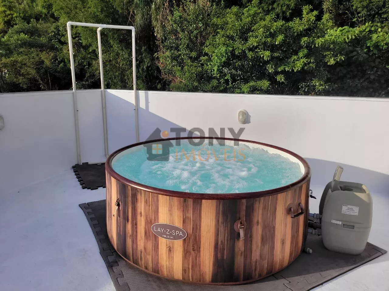Gás central para as duchas dos dois banheiros da casa, usina de energia solar com microcontroladores (mais moderna, mais segura e mais eficiente) com 6,75 kw/h de produção e área de lazer coberta junto à natureza.