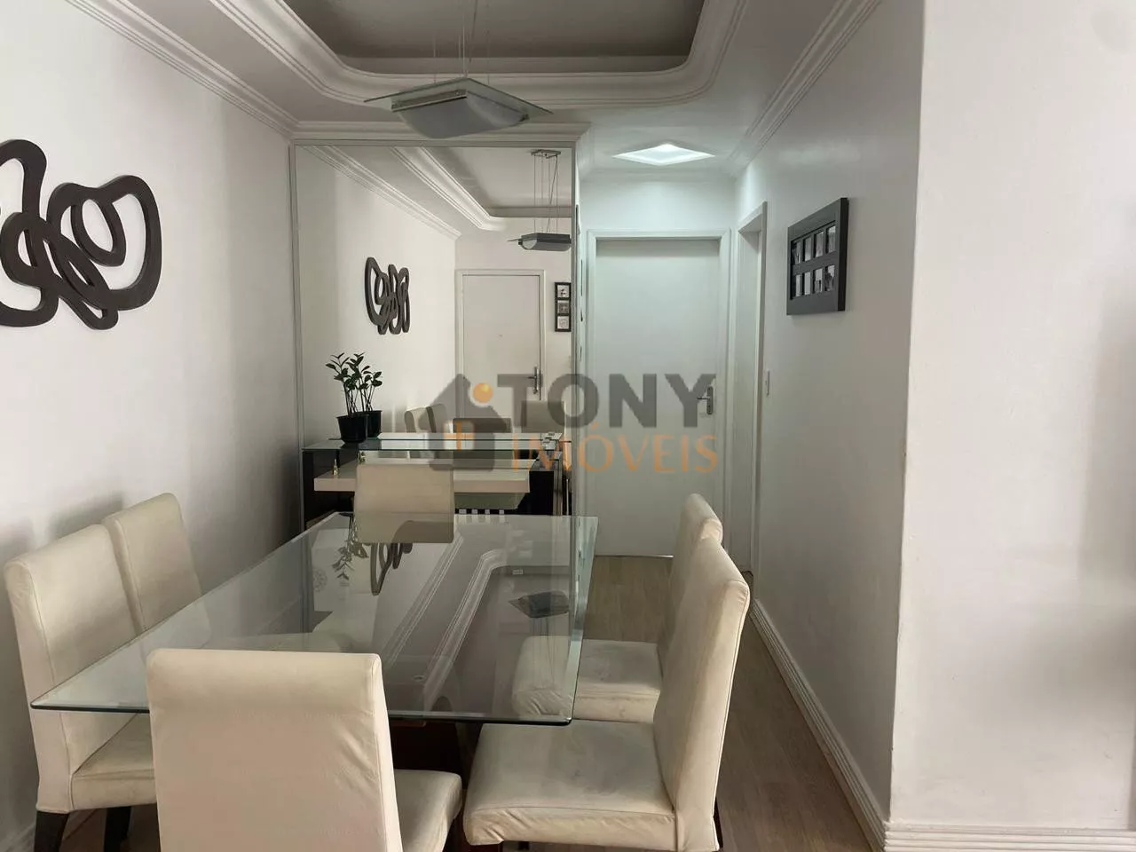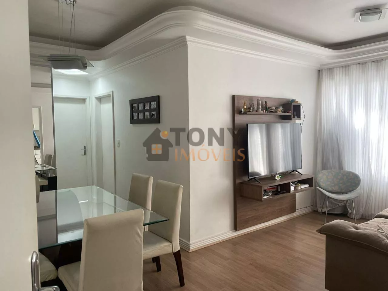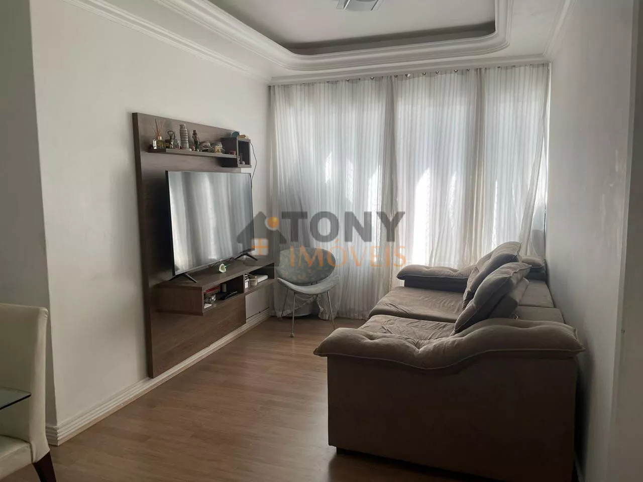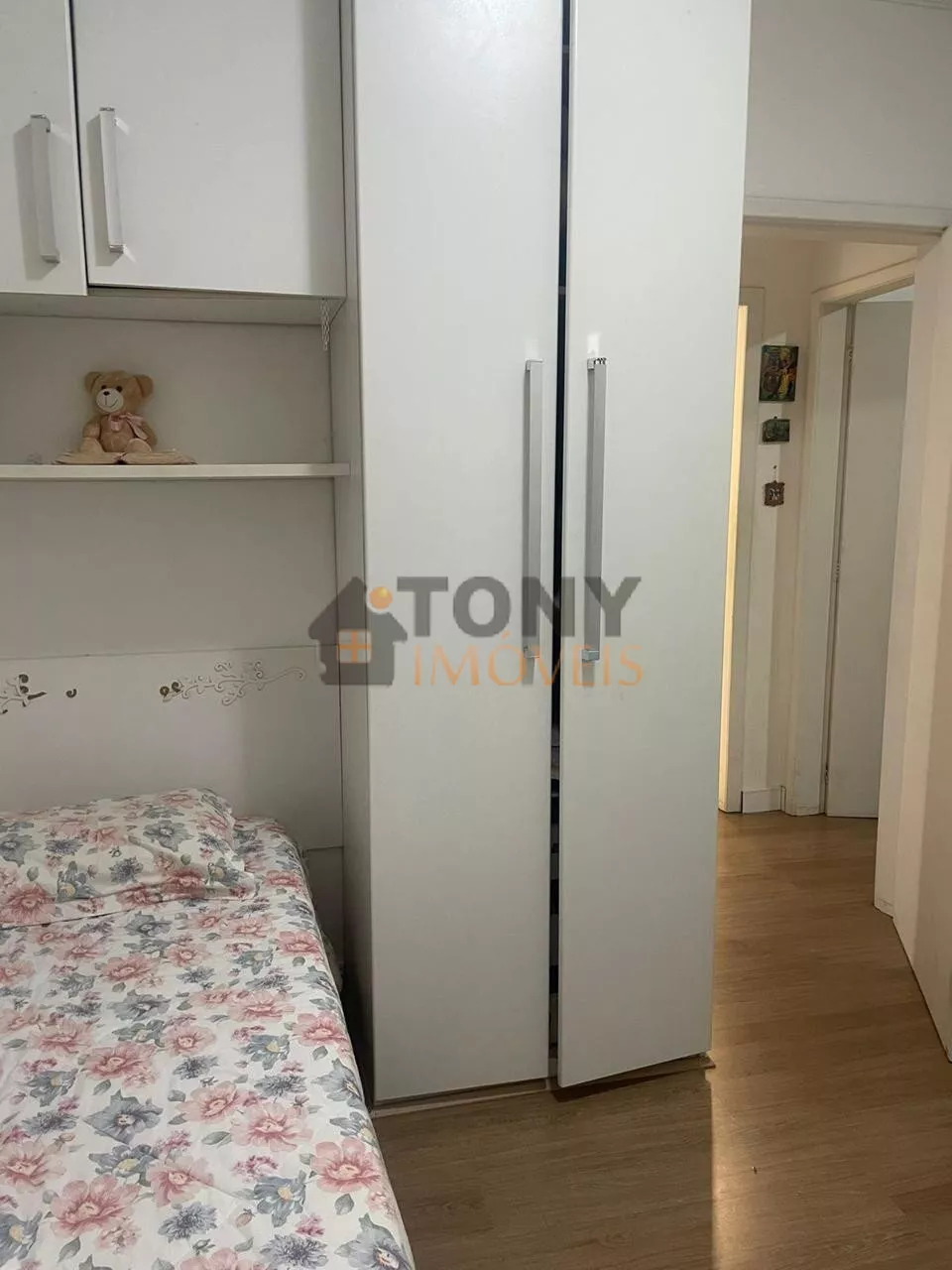 O Imóvel conta com 02 dormitórios, sala, cozinha integrada com área de serviço, 01 banheiro social, são 58m² de área privativa; 01 Vaga de garagem coberta, móveis embutidos na cozinha e nos quartos.