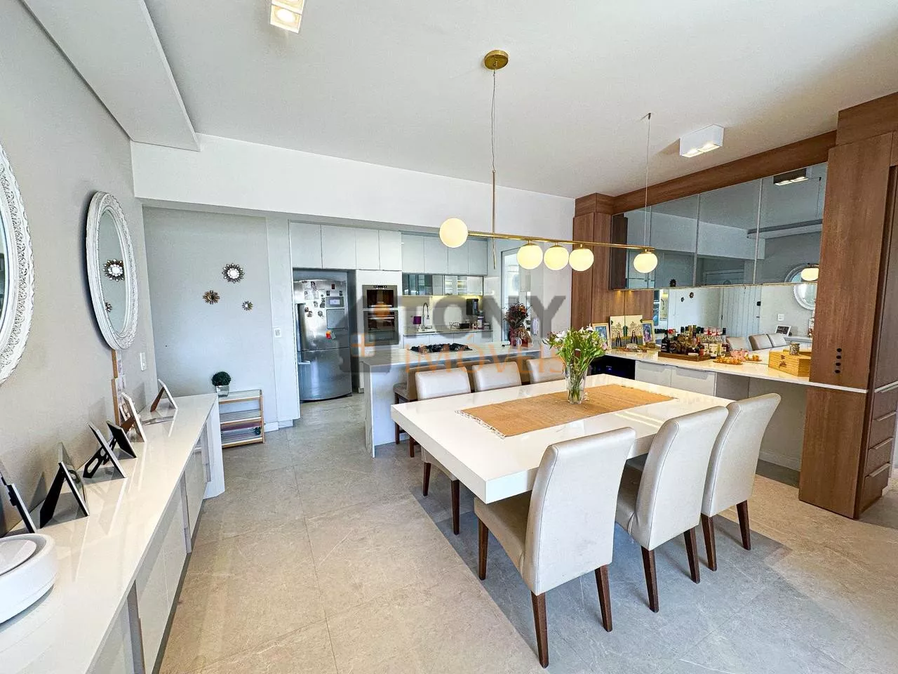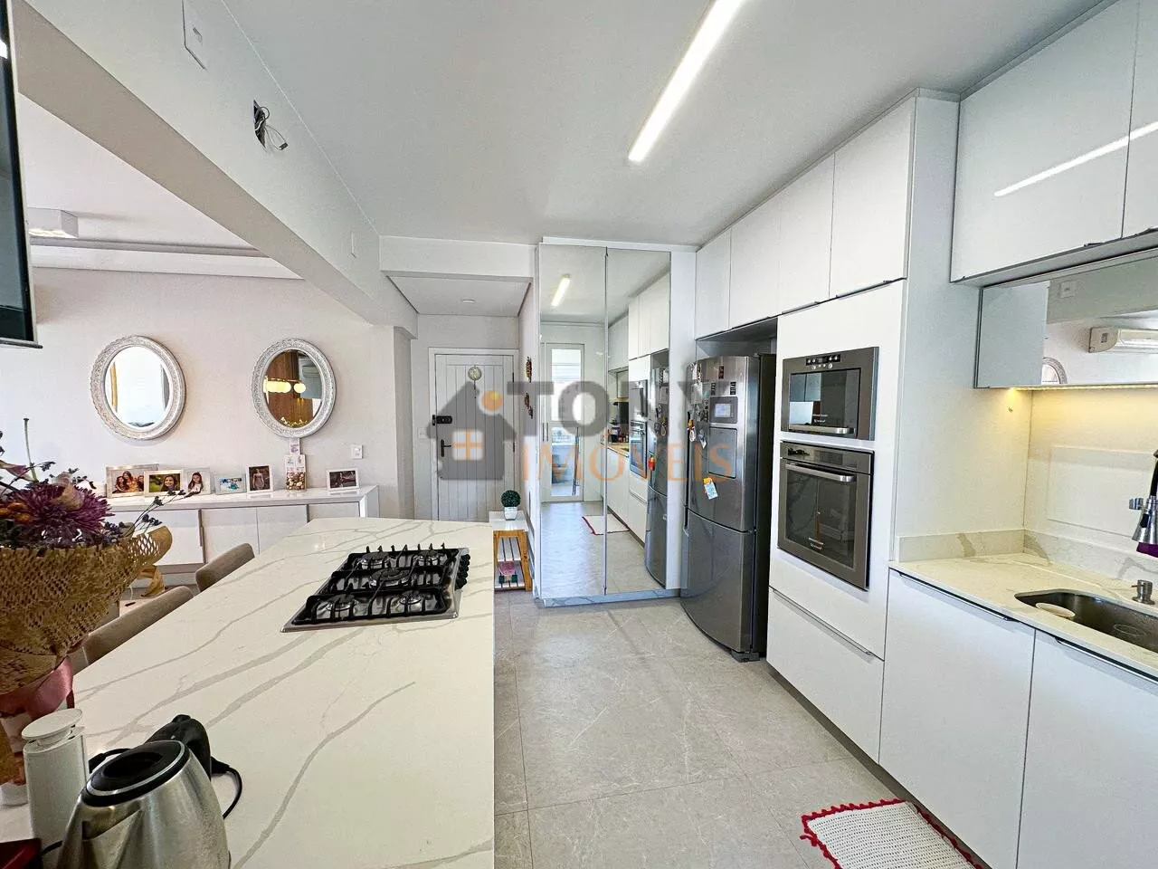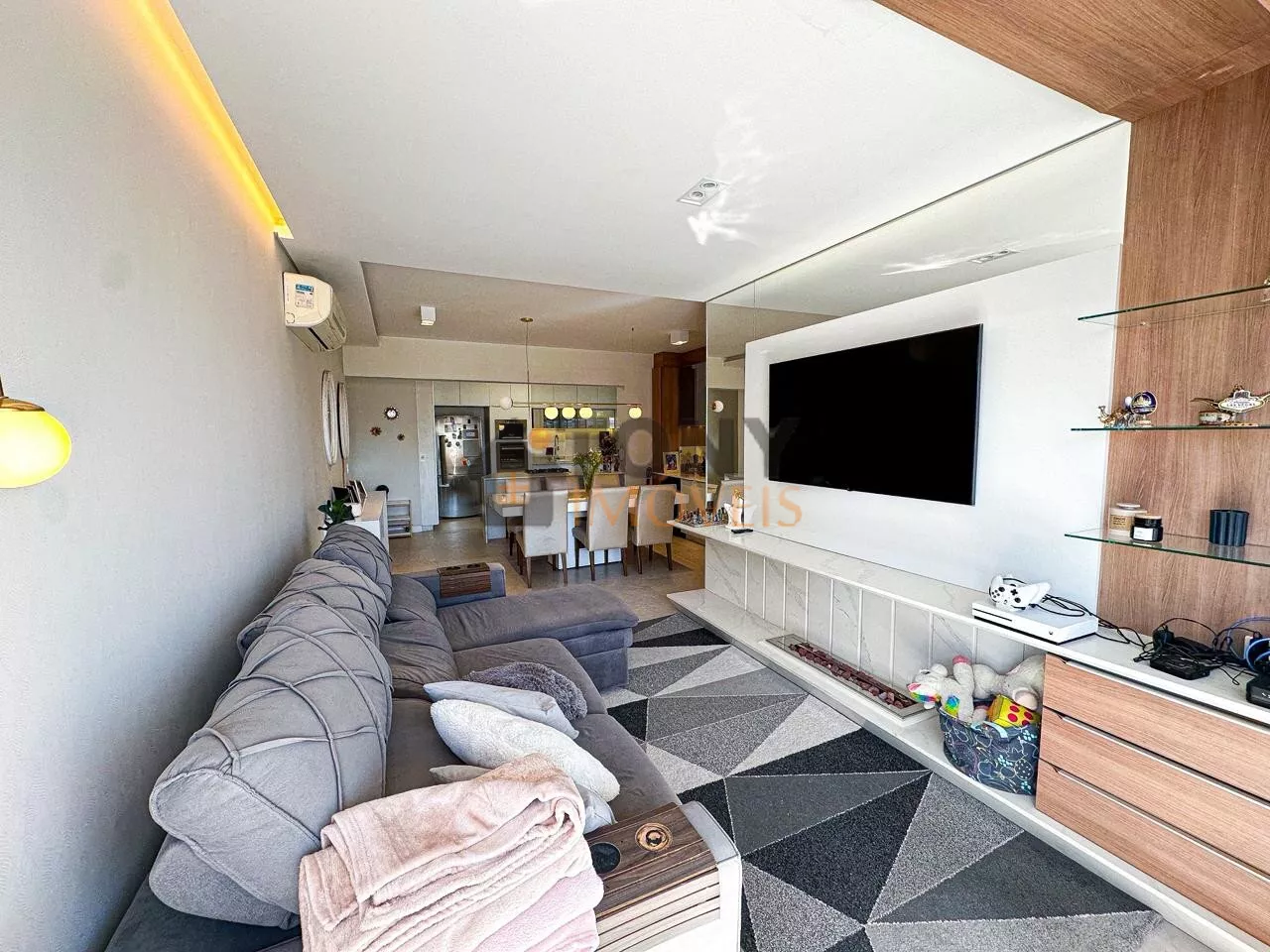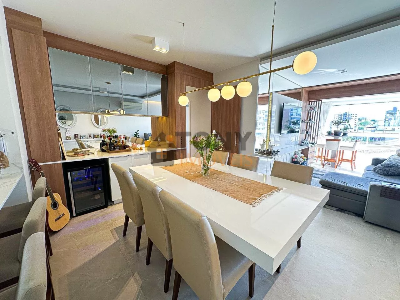 São 118m² de área privativa com 3 quartos sendo 2 suítes, 1 banheiro social, a cozinha com ilha em frente a sala de jantar com uma grande mesa para receber as pessoas especiais da sua vida, uma sala de estar com lareira deixando o dia a dia ainda mais especial, isso integrado com a sacada que tem fechamento em vidro (REIKE) churrasqueira, uma ótima vista para a bairro, bem ensolarado em todos os ambientes além de toda mobilia e decoração.