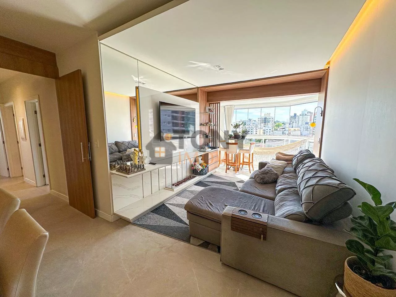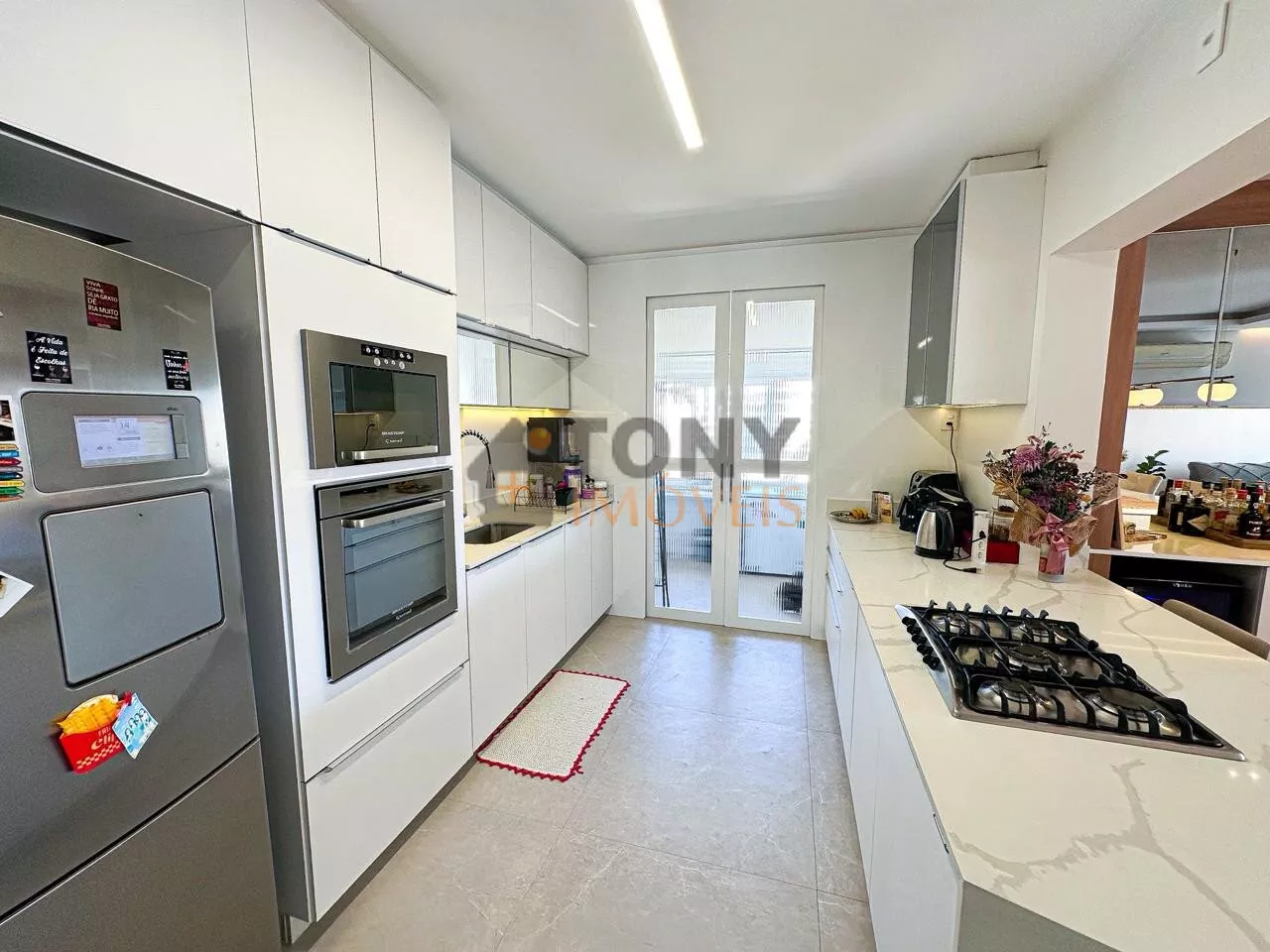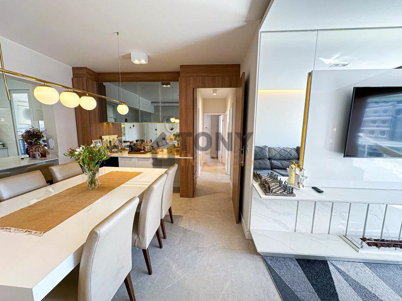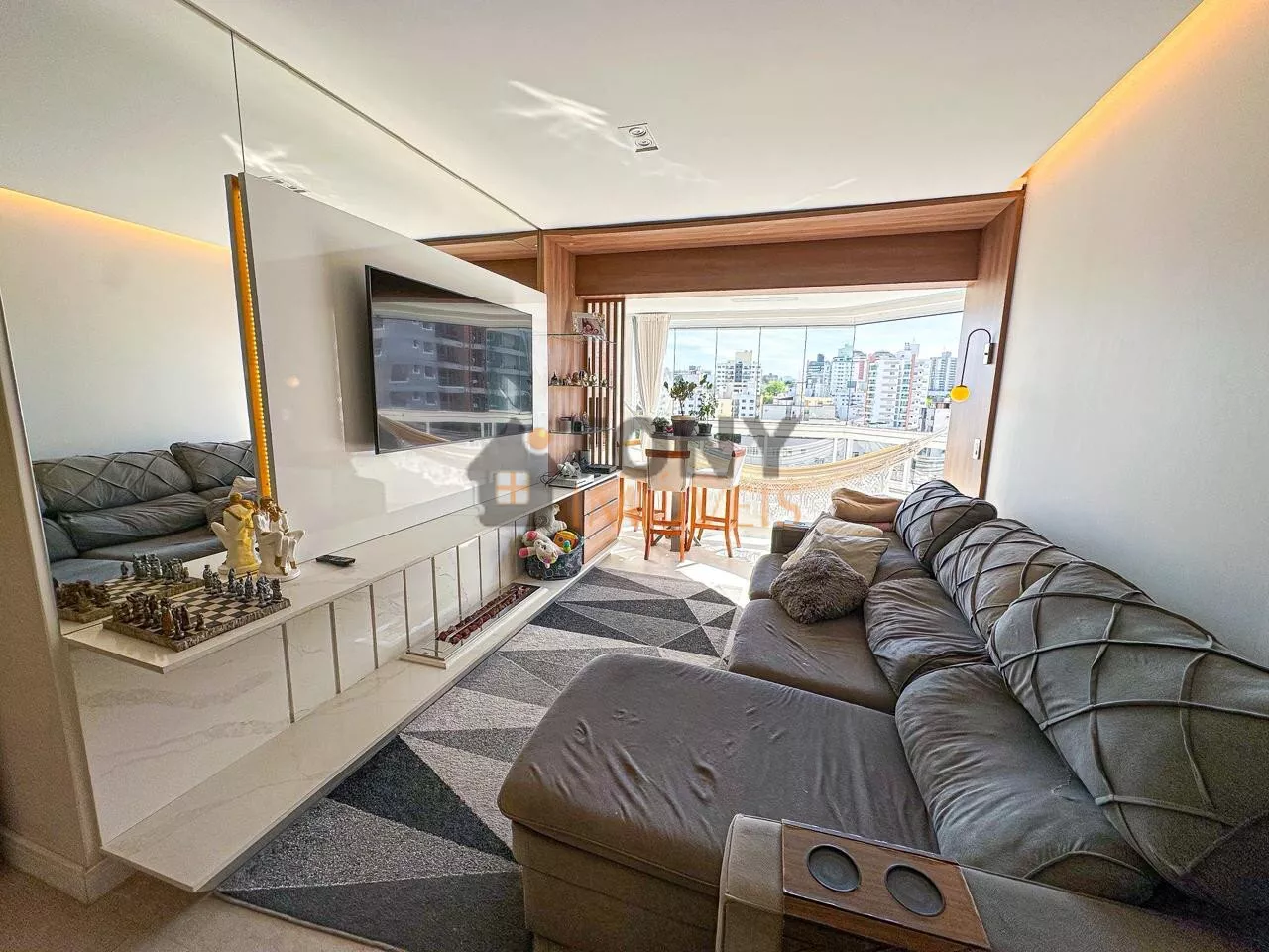 São 118m² de área privativa com 3 quartos sendo 2 suítes, 1 banheiro social, a cozinha com ilha em frente a sala de jantar com uma grande mesa para receber as pessoas especiais da sua vida, uma sala de estar com lareira deixando o dia a dia ainda mais especial, isso integrado com a sacada que tem fechamento em vidro (REIKE) churrasqueira, uma ótima vista para a bairro, bem ensolarado em todos os ambientes além de toda mobilia e decoração.