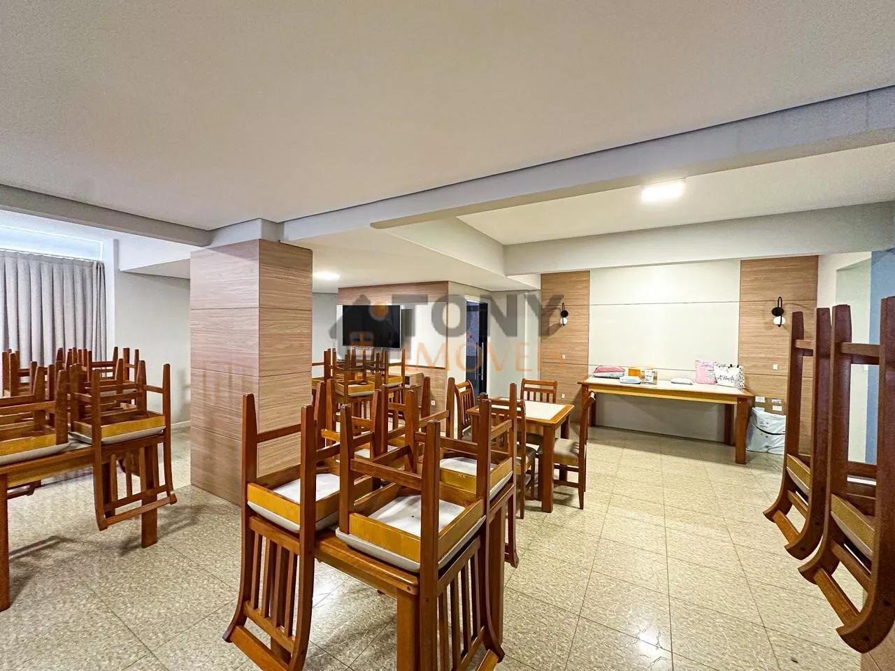 Condomínio com salão de festa, zeladoria, porteiro, playground e vagas de visitantes.