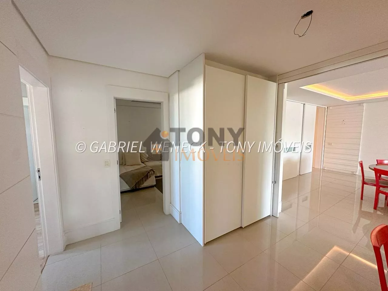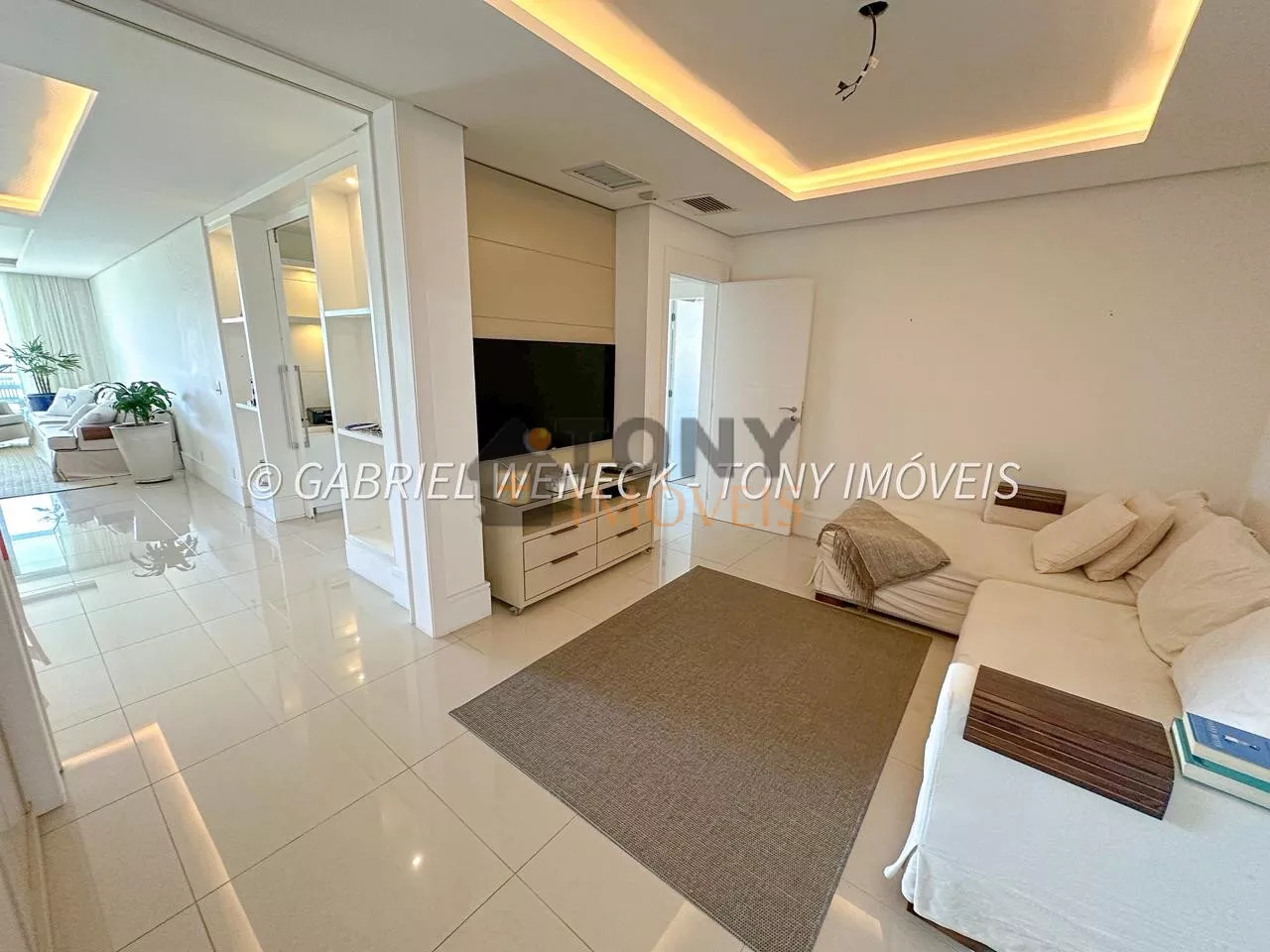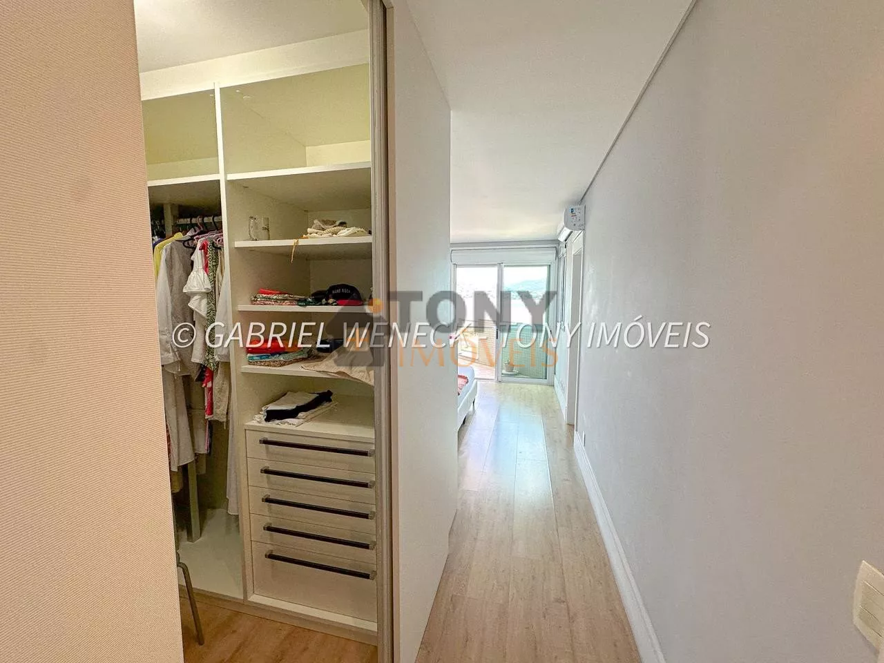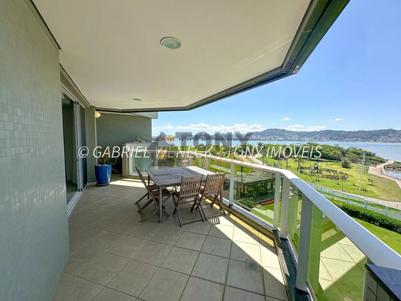 O apartamento tem 404m2 de área útil, sendo 299,71m2 de área particular, 4 suítes com armários embutidos, piso em lâmina de madeira e persianas com acionamento elétrico, uma sala de estar ampla com espaço para toda família e a sacada com uma vista espetacular para ilha.