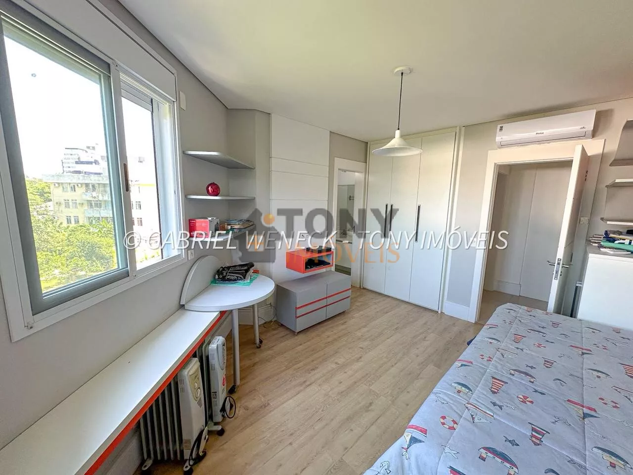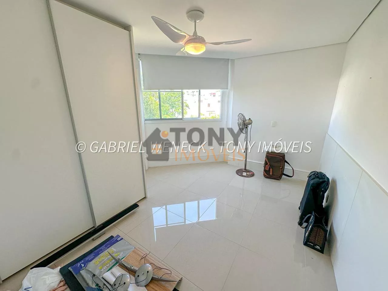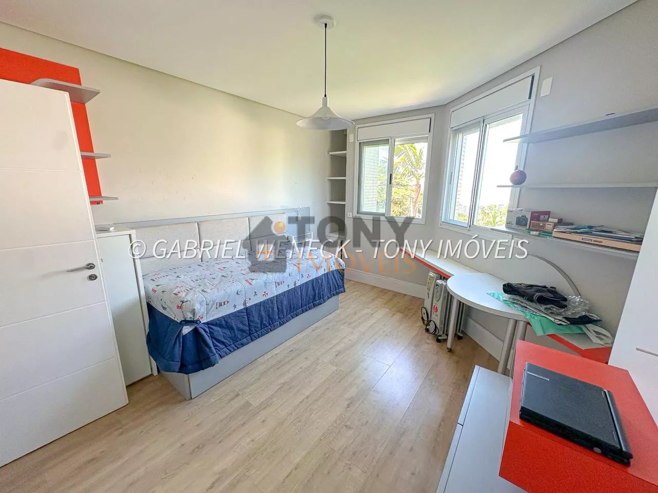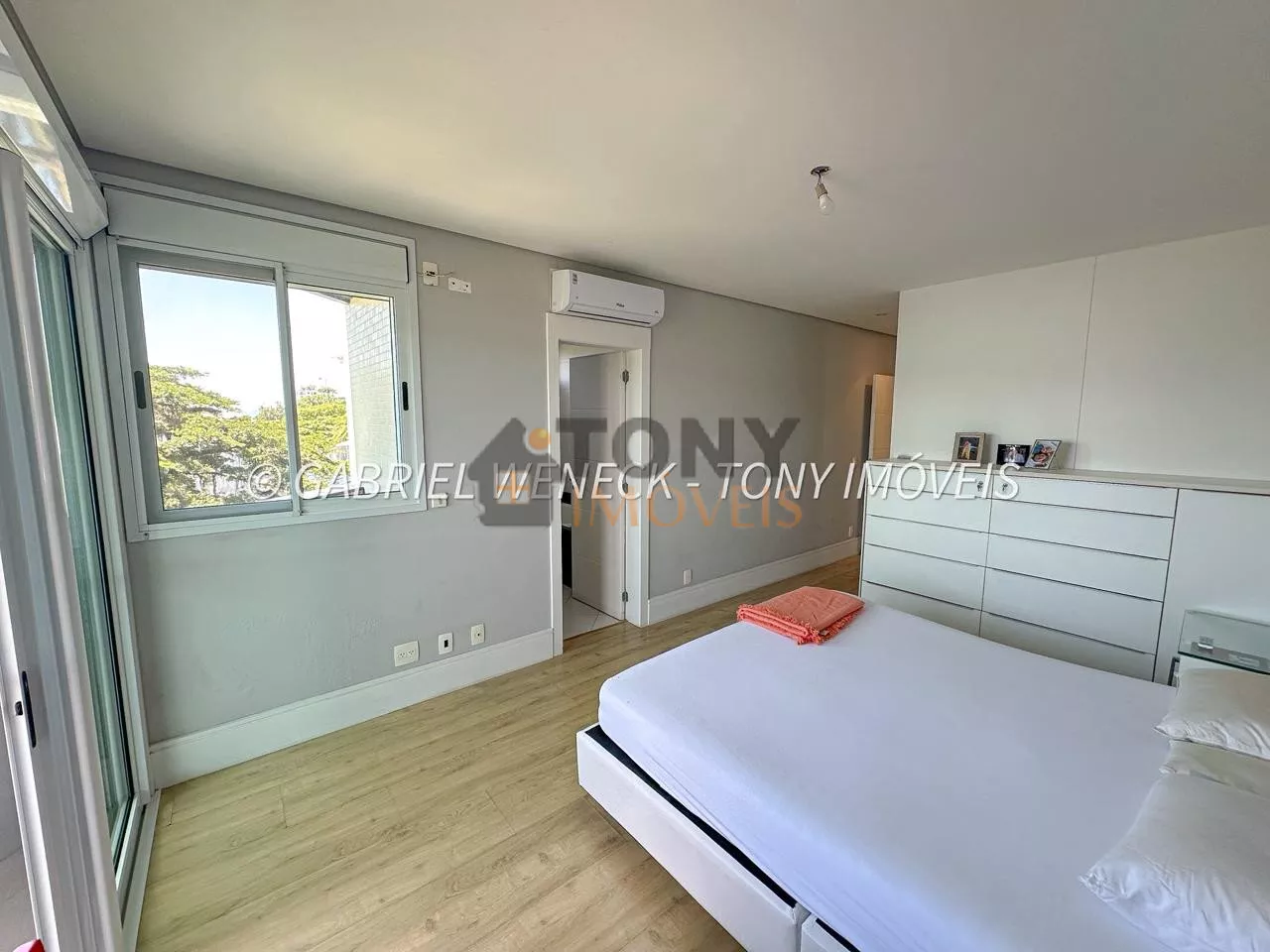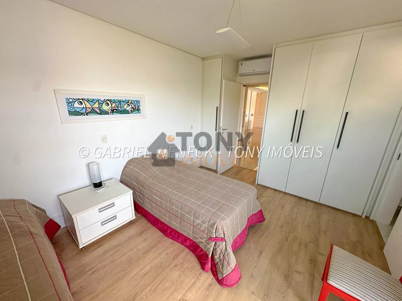 O apartamento tem 404m2 de área útil, sendo 299,71m2 de área particular, 4 suítes com armários embutidos, piso em lâmina de madeira e persianas com acionamento elétrico, uma sala de estar ampla com espaço para toda família e a sacada com uma vista espetacular para ilha.