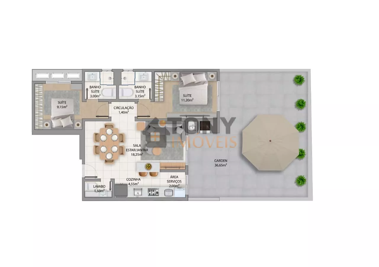 | Apartamento: | 2 DORMITÓRIOS COM 2 SUÍTES COM TERRAÇO | |