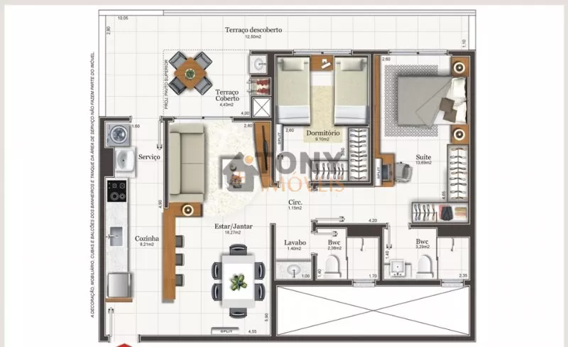 | Dormitórios: | (2) dormitório(s) sendo (1) suíte(s) | |