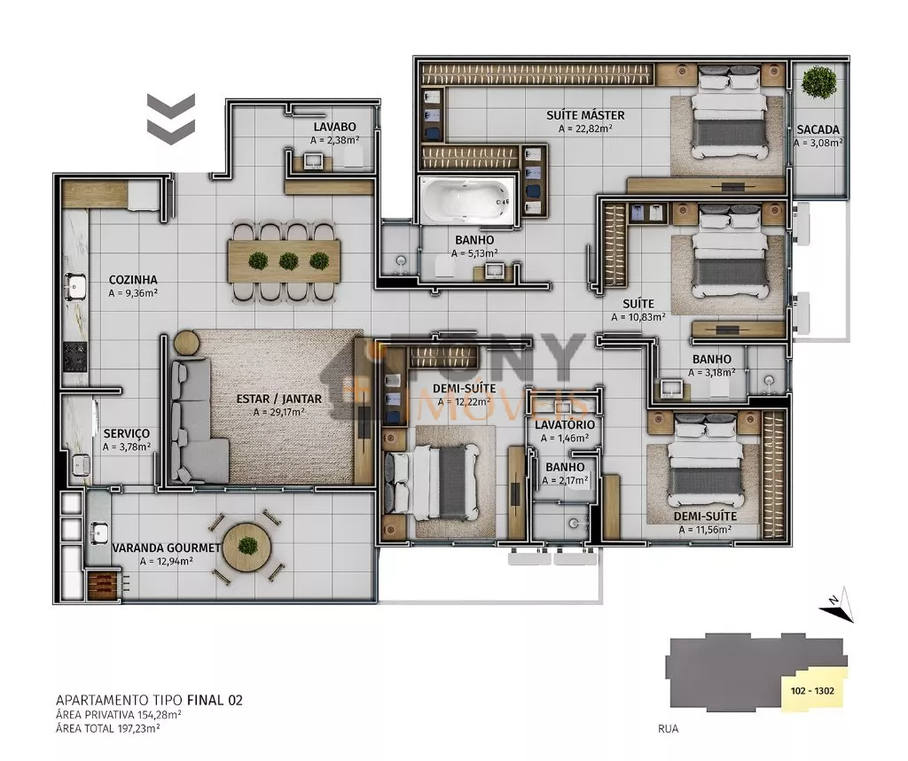 | Área comum: | 154 M² | |