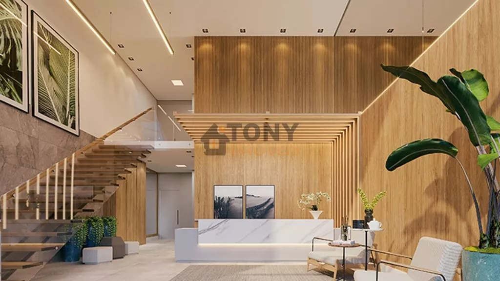 Hall de entrada social imponente com pé direito duplo;