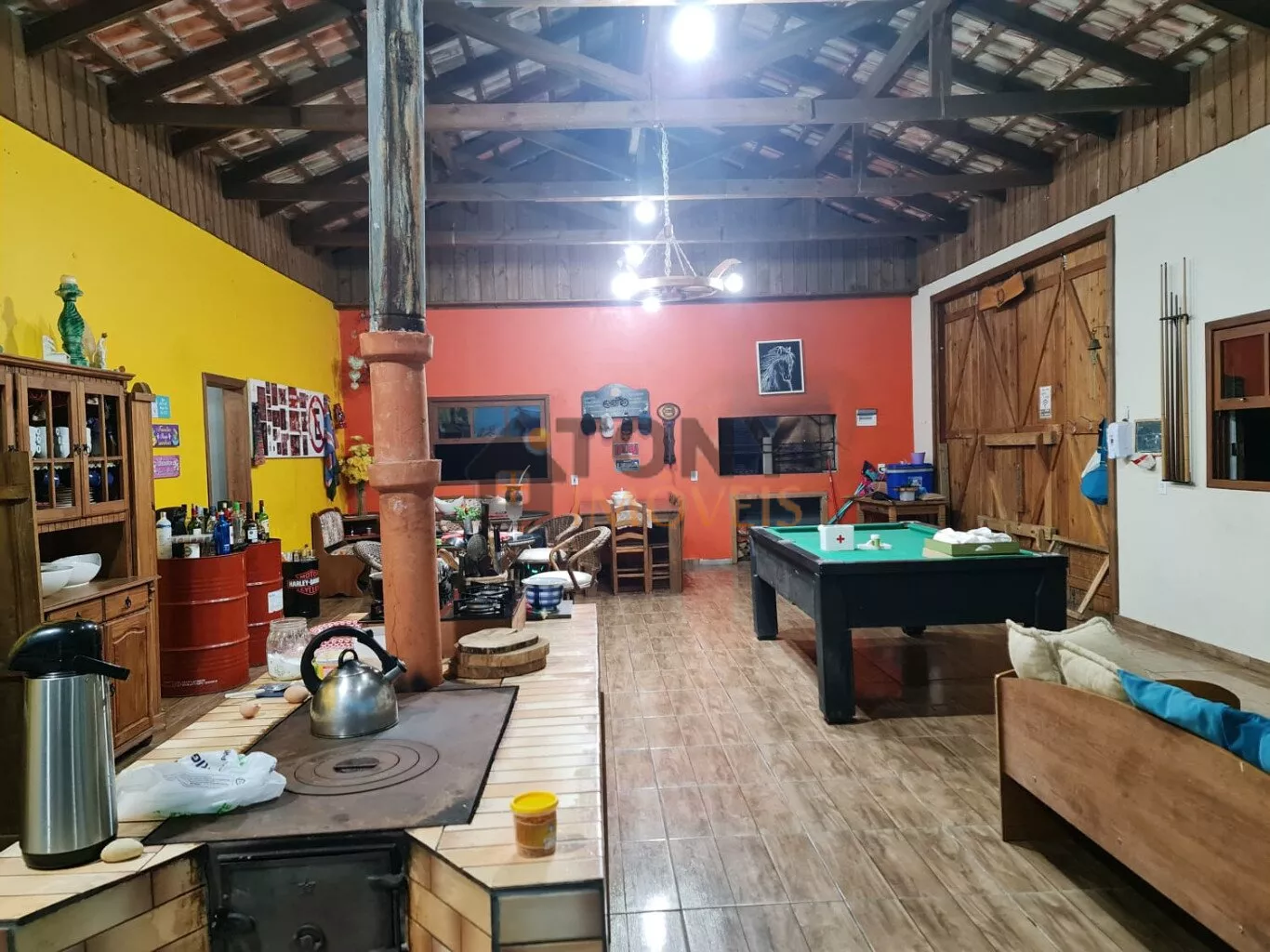 5 cabanas completas uma sede grande, tudo mobiliado, todas com ar condicionado quente frio, cozinha completa, lareira e fogo de chão, cama, mesa, banheiro, forno de micro-ondas, cafeteiras, sanduicheiras, lareiras ,4 pontos de Internet que pega em toda propriedade. Gerador luz própria.